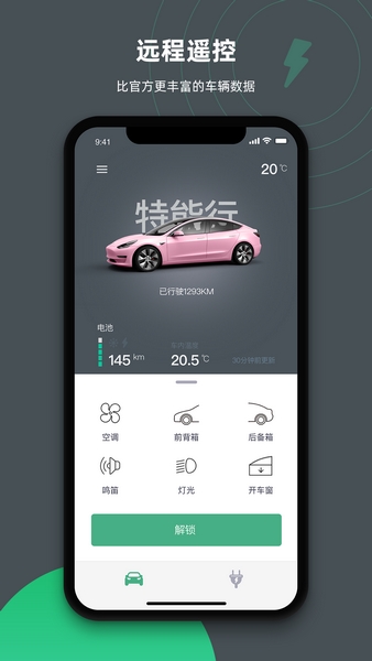 特能行APP是一款非常实用的智能控车软件,其专为广大新能源汽车车主打造,通过这款软件用户可以实时远程查看车辆状态,无论是电量、里程,还是温度等全都一一展示,并能进行控制车辆的设备启动,一键远程解锁,开启空调等操作,为你带来更多便利!同时更为用户实时带来周边的充电桩信息,让你避免无电状态!