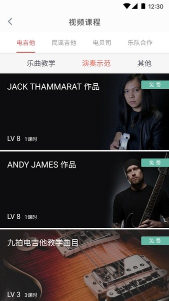 畅弹吉他app里有大量的专业的吉他学习课程,用户可以寻找自己喜欢的各类内容。