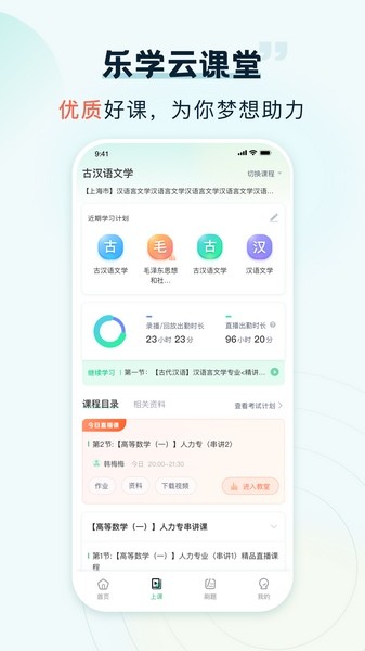 3、乐学题库:提供课程配套练习,依托智能评分系统,让你随时随地刷题,提升学习效率!