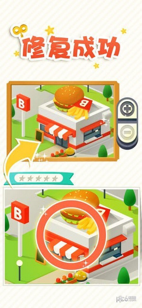 修复大师中的模型小镇原来非常漂亮,但是年久失修,四处都是破损痕迹,玩家要拿出你的工具,修复小镇,让其恢复原本的美丽吧!