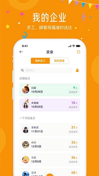 1、生日分组:按照类型自定义分类,朋友、家人、同学、同事、客户生日一目了然。