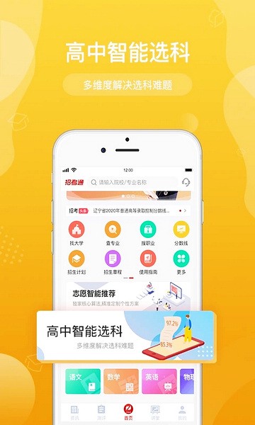 以“查、测、学、填”四大应用解决考生填报志愿难题。“查”——通过查大学、查专业、查分数了解报考信息;“测”——通过各种测评发现自己、定位自己,匹配到适合的专业;“学”——通过视频课堂的学习,零起点掌握基本填报技巧,明确心仪院校和专业的方向;“填”——通过一键填报,形成私人定制版志愿方案。所有功能贴心满足用户填志愿各个环节所需,从“好用、有用”的角度出发,为每一位辽宁考生提供专属完美志愿。