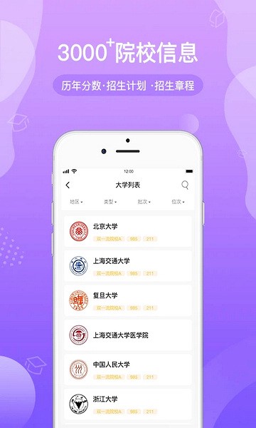 根据院校近3年录取分数线、位次和当年招生计划等庞大数据,对接用户个性化需求,运用独家研发科学的核心算法推荐院校及专业,最终形成私人定制版专属志愿方案。