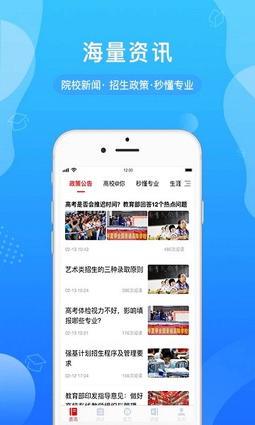 2、在“资讯”中可以看到最新的高考志愿信息以及指南;