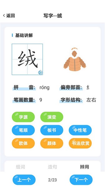 还有汉字学习的部分也很用心,不仅有详细的拼音、偏旁部首等信息,还能了解汉字的演变历程,这对学生来说特别有帮助,既学到了知识又增加了乐趣。支持好友分享的功能也挺棒的,可以一起学习一起进步。