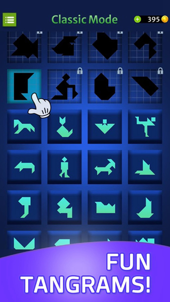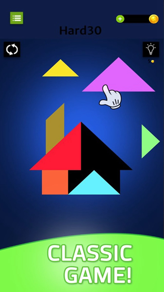 轻松游戏时间:无论何时想要放松,只需轻触屏幕,即可进入烧脑七巧板的世界,享受一段无忧无虑的时光。