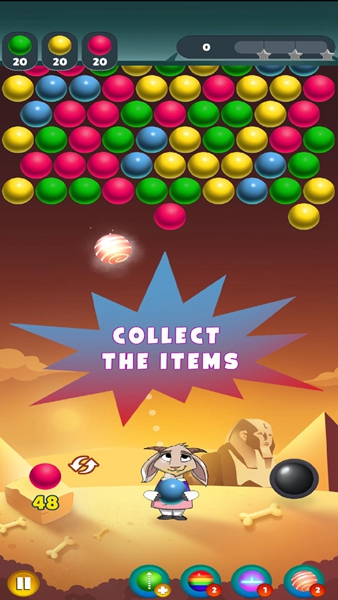 2、独特道具辅助: 通过消除特殊球获得道具,关键时刻逆转战局,助您轻松过关。