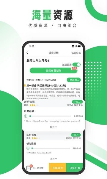 各类试卷、试题资源与各地教材同步,内容权威,并和英语周报等机构合作,内容不断扩容;