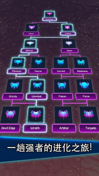 2、丰富进化,实力升级: 80多种螃蟹形态,通过进化和突变,见证螃蟹从弱小到强大的非凡历程。