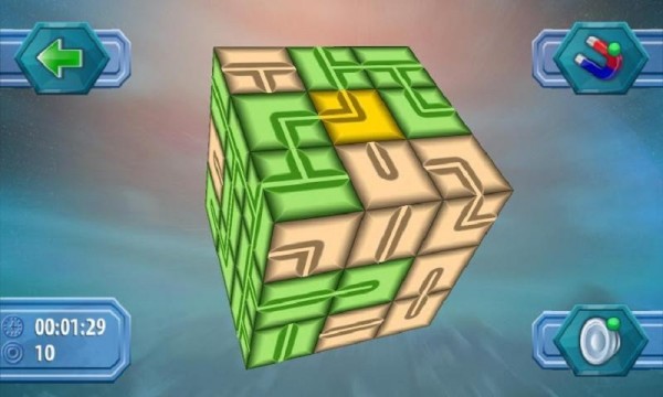 3D连通是一款以接水管玩法为主的连通游戏,巧妙地采用了正六面体这一结构来将这两种原本风马牛不相及的内容结合起来。游戏画面非常简约直接,但却有着极高的可玩性,非常适合喜欢动脑的玩家们,要知道,要想让3D的立方体上的水管全部连通起来可不是一件轻松的事情,不过游戏的乐趣正在于此。