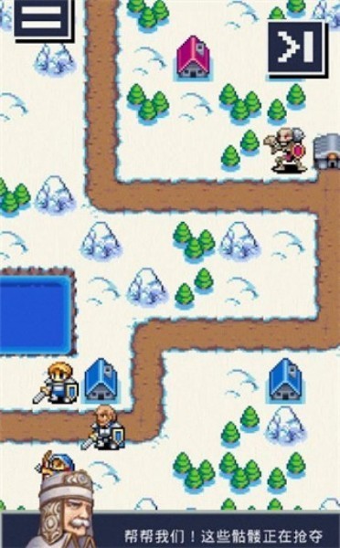 好象很多人说很难,其实主要是靠耐心的。下方的村庄里派一支步兵敢死队死守,不要攻击,只站着吸引敌人同时保障下方村庄的资源。这样可以守多个回合。稍后再派一支步队,这样就可以拖住这边了。敌人主要通过右边的路线上来,利用廉价的步兵做肉盾,后边由弓兵,步兵推进占领右上方的村庄,阵行一定要密集:前排肉盾、后排弓手受,资金充足时一定要买一个召唤师去召唤骷髅,不要让弓手受到太的伤害。抵挡几个回合以后,资金相对充足了就可以往右下攻击了。