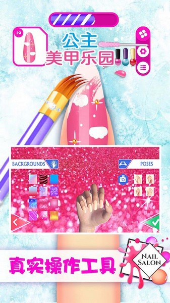 最近我玩了一款叫《公主美甲乐园》的游戏,感觉超级棒!这是一款模拟当美甲师的游戏,你可以在里面给各种手模设计美甲。游戏里有很多工具和材料,比如贴纸、指甲油、亮片等等,你可以自由搭配,创造出独一无二的美甲作品。