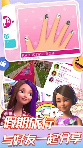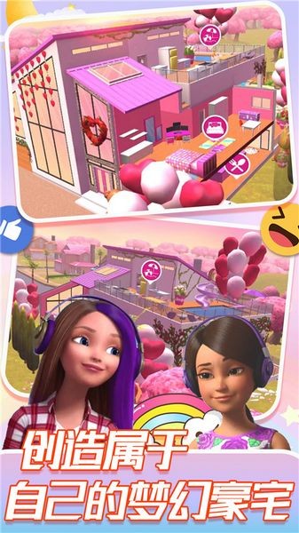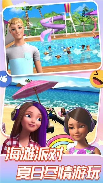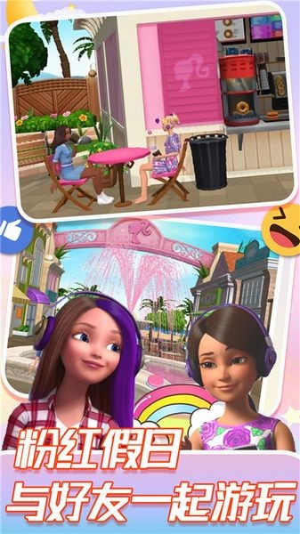 2、乘坐我的粉红色敞篷车,出发探索马里布,寻找更多趣味活动。另外,请帮我和我的朋友们打扮得时髦出彩,拍出美美的照片!跟随我们踏上刺激的梦幻屋大冒险,体验一切皆有可能!