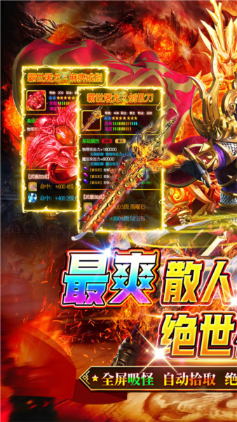 1、爆爽的沉默版剧情,全自动回收、全屏拾取特权,开启热血、刺激的传奇之旅。