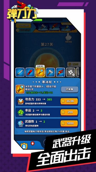 4、在弹刀刀游戏中玩家通过完成任务和参加比赛来获得金币,排名越高,奖励就越多。