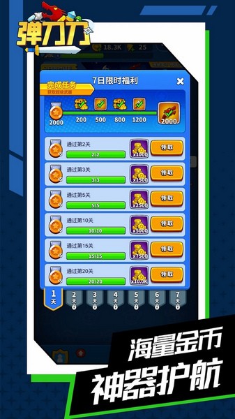 1、各种酷炫的飞刀造型,还有七天限时奖励可以领取,让你的体验更加全面和丰富。