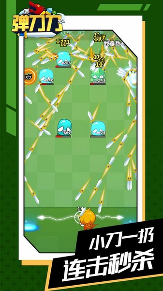 Q版可爱画风与休闲玩法:游戏采用Q版精致的漫画风格,画风可爱,为玩家带来轻松休闲的视觉体验。玩家通过弹射飞刀击败关卡中的敌人,玩法简单有趣,适合在空闲时间放松娱乐。