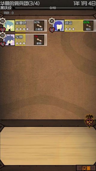 2、游戏中所有的事件,任务,人物都是随机的,你将从最开始的几人的小佣兵团队一步一步成长起来