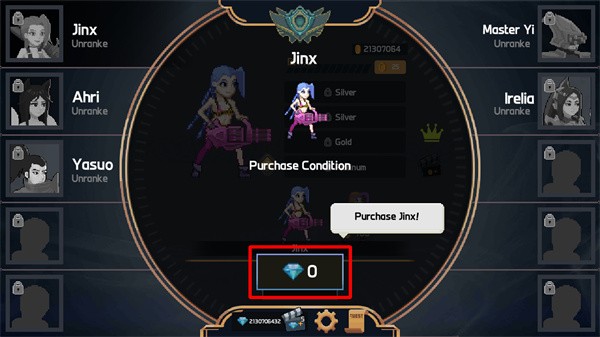 像素风格与英雄联盟角色还原:游戏采用像素风格,将英雄联盟中的角色以独特的像素形式呈现,包括金克斯、剑圣、刀妹和亚索等经典角色,为玩家带来熟悉而又新颖的视觉体验。