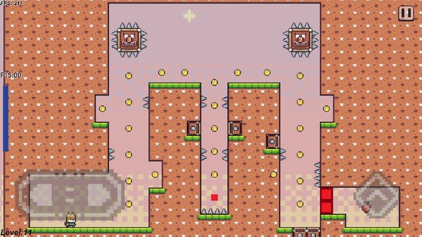3、亲自体验不同的游戏玩法,在卡通像素平台上,利用喷气技能取胜。