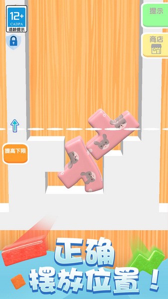 这款游戏叫积木拼拼乐,听起来就很有意思!玩法是用各种颜色的方块填满关卡里的位置,听起来简单但其实挺有挑战性的。操作特别方便,手指轻轻一划就能移动方块,还能解锁很多有趣的关卡。最棒的是游戏里有很多可爱的果冻积木,看起来软萌又有趣,让人忍不住想多玩几局。