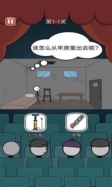 4、若玩家没有完成五角星会被关进监狱,火柴人在监狱中越狱进入机器人设备室,玩家可选择打包机器人或鸭;