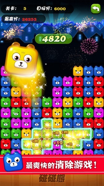 3、同时消除的熊熊越多,获得的分数就会越多;