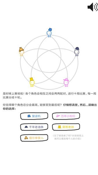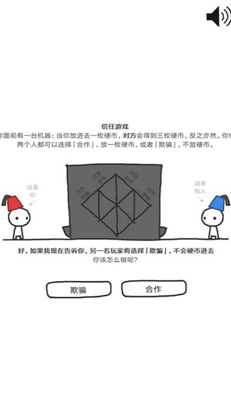 信任的进化小游戏是一款在线互动教育游戏,其灵感来源于罗伯特·阿克塞尔罗德的著作《合作的进化》。游戏以动画和简单直观的博弈论模型为基础,通过寓教于乐的方式探讨了信任、背叛与合作在社会交往中的演化过程。在游戏中,玩家将经历一系列的囚徒困境场景,与其他游戏角色进行多次互动,每次互动都可以选择信任或背叛。游戏角色包括但不限于复读机、千年老油条、万年小粉红、黑帮老铁、福尔摩星儿等,每个角色都有自己特有的信任策略。