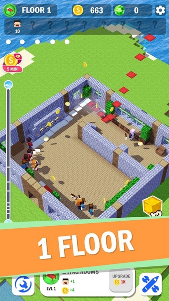 3、当我们有足够的金币以后,可以解锁更多的建筑,增加我们收入的同时让楼层更加丰富。