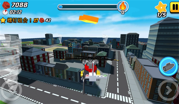 玩家进入空中消防关卡,需要控制直升机洒水,按照指示直走,路过一个龙卷风,龙卷风后面一个就是金砖,飞过龙卷风区域绕一圈就可以看到金砖,控制直升机飞往金砖上就可以直接获得,之后照常灭火就可以了。