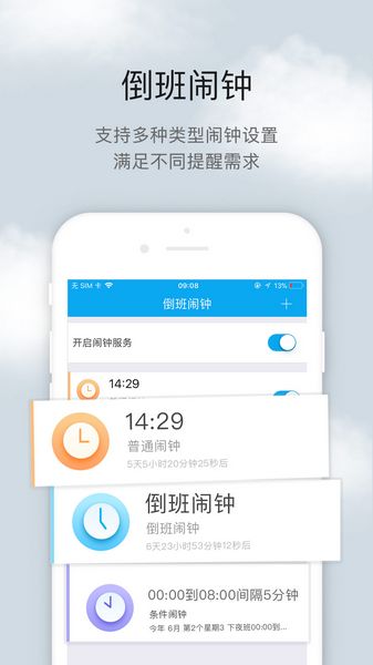 我个人觉得这款软件特别适合那些工作时间不固定的人群,比如保安、物流司机或者轮班工人等。特别是它的闹钟功能非常贴心,支持普通闹钟、倒班闹钟和条件闹钟等多种设置,可以根据个人需求灵活调整。此外,云端同步功能也很实用,不用担心数据丢失,而且还能生成二维码分享到朋友圈,方便和其他同事交流。