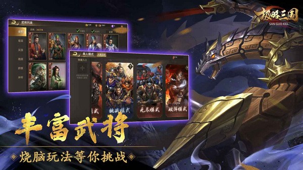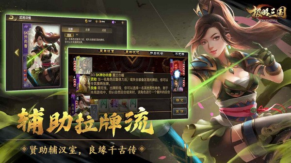 3、精致唯美的武将头像、酣畅淋漓的卡牌对决、创新独特的自创武将,一定会让各位爱不释手。