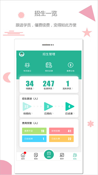 我觉得这个app挺方便的,尤其是那些中小型培训机构,可以不用花太多钱就能管理好学员和课程。特别是补课功能,对经常缺课的学生来说是个大救星。家校互动也能让家长更了解孩子的学习情况,帮助孩子更有动力学下去。不过,使用前需要先获取邀请码,通过拨打电话咨询就能得到。