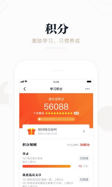 首先如何获得积分,用户通过在学习强国上完成学习行为(登录、阅读文章、观看