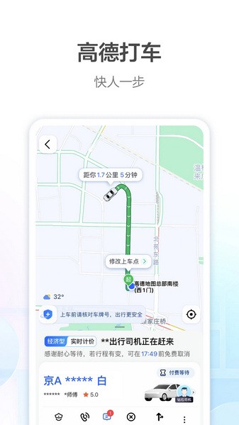 限行路段早提醒、鹰眼高德地图看全程、三维实景导航,出行更无忧。
