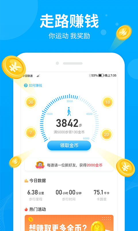 2、走路赚钱,你运动,我奖励;