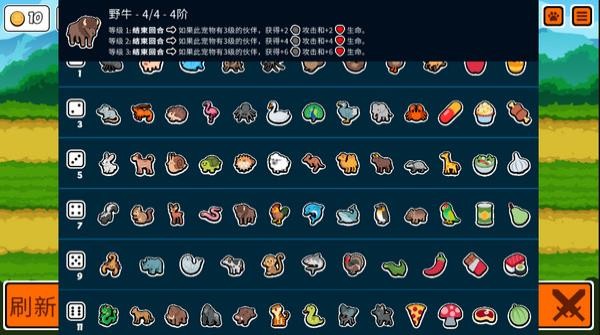 5、长颈鹿 2|5 一个典型的临时买卖宠物,一级技能是每回合结束后给前方的一个单位+1|+1,相当于每回合多一个苹果,升二级后不是加提升属性而是提升人数,二级加两个,三级加三个,前期使用可以起到稳定养成的一个效果,在后期属性加的分散,提升也不多,显然不如企鹅猴子厉害,所以是一定要换的。不建议升级。有意思的是,由于长颈鹿不会叫,相比较别的宠物购买时会发出对应叫声,而长颈鹿却是一句旁白‘’giraffe‘’(长颈鹿的英语)