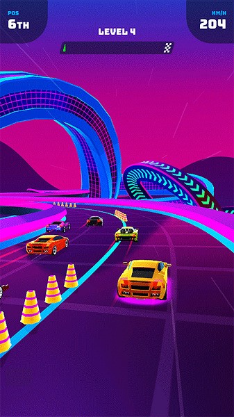 2、长按屏幕能够提升赛车速度,行驶过程中需要闪避路边的障碍。