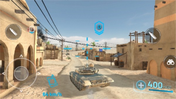 1、坦克选择操控:下载安装后进入游戏,从首页选择主战坦克,通过左边摇杆移动、滑动屏幕调整炮口方向,利用望远镜按钮瞄准,点击开炮按钮攻击。