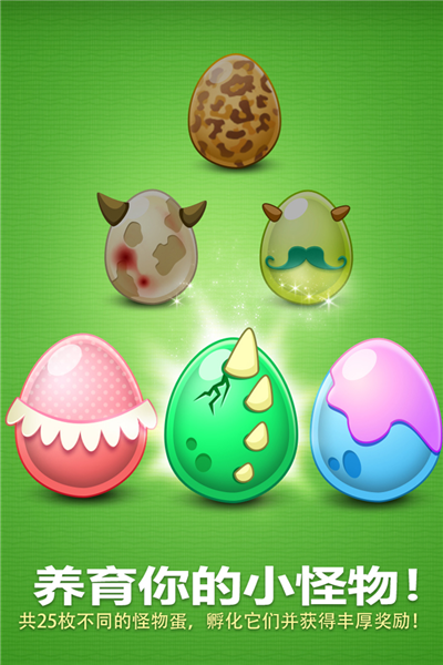 3、怪物养成系统,把收集来的怪物蛋孵化成萌死人的怪物宝宝,把它们养大后将会解锁隐藏地图!