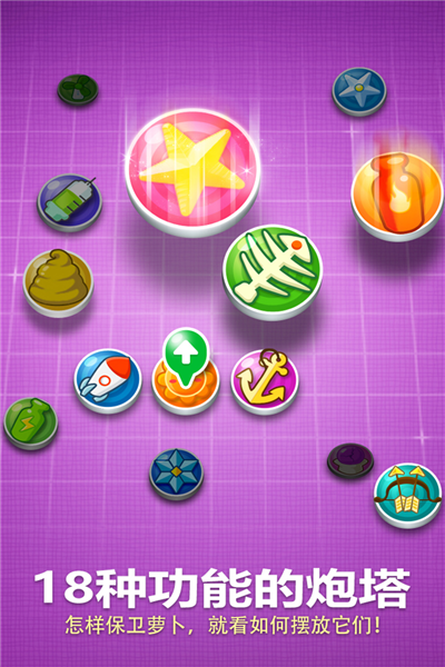 保卫萝卜官方版是一款有着可爱卡通画面的策略塔防游戏,老少皆宜的玩法特点可以让全年龄段的玩家们都沉浸其中,即便是刚接触这类游戏的新手们也能够非常快的掌握技巧。随着通过的关卡越来越多,游戏的难度也会逐渐的增加,对于喜欢这类策略游戏的玩家们而言始终具有一定的挑战性。大家也完全能够解锁大量的塔防关卡来挑战,也可以通过修建炮塔来抵挡怪物们的入侵,及时升级炮塔,不但外观会变得更加炫酷华丽,威力也会随之变得更加强大,保护路线终点的萝卜们的任务也会变得简单。易上手的休闲点击玩法极大的增加了保卫萝卜官服这款游戏所能够带给玩家们的趣味性,还有新颖的怪兽蛋养成内容的加入,因此可玩性也非常高。