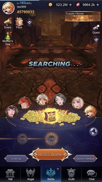 空闲天使具有大量的 BOSS 战斗,您的天使在回合制战斗中共同对抗强大的 Boss。主要故事的进展是通过完成 BOSS 战斗来完成的。