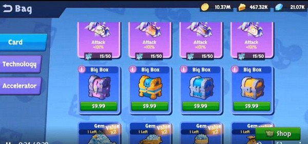 - 大量升级:收集科技碎片和卡片来增加收入。
