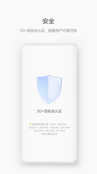 国内外50+个SaaS级安全认证,保护隐私安全;提供保密通信功能和企业专属安全隧道、安全沙箱等能力,让过程可信,结果可追溯。
